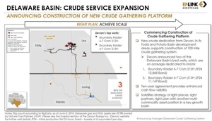 Further expenditures are expected as Devon continues to develop its acreage in the region. Initial operations are expected to commence during the third quarter of 2018, and be completed in the first quarter of 2019.