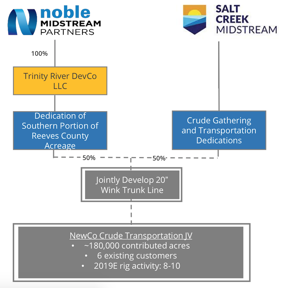 Salt Creek Midstream and Noble Midstream Partners have agreed to form a joint venture to build a new 200,000 bbl/d crude oil pipeline and gathering system in the Delaware Basin in West Texas.