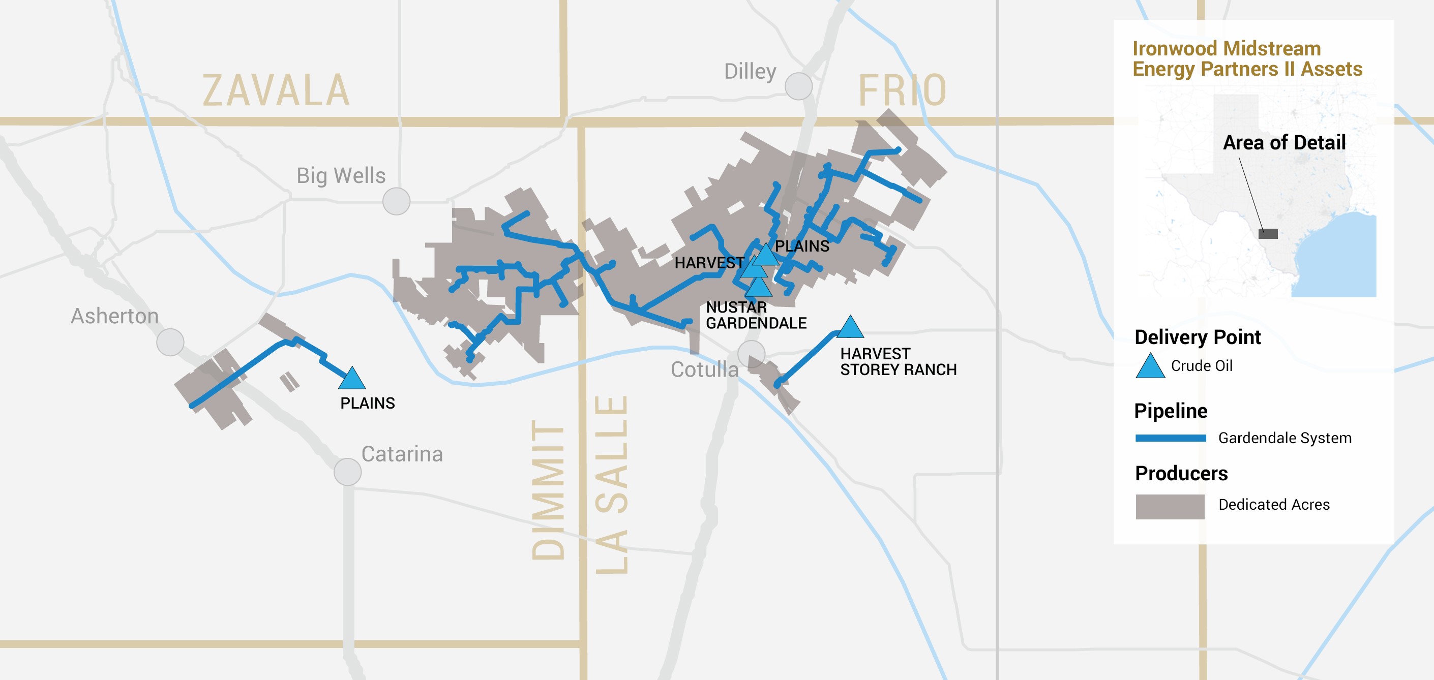 “The Gardendale system ... looks to have a long life, great geologic characteristics and positive producer economics, even at current commodity price levels," said Mike Williams, chairman, president and CEO of Ironwood II. "We look forward to working with existing customers and bringing on new customers as we expand the footprint of the Gardendale system.“