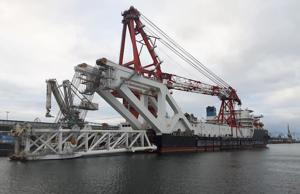 A Russian vessel that has the capabilities needed to complete the Nord Stream 2 pipeline has left the project's staging area in Germany where it was docked.