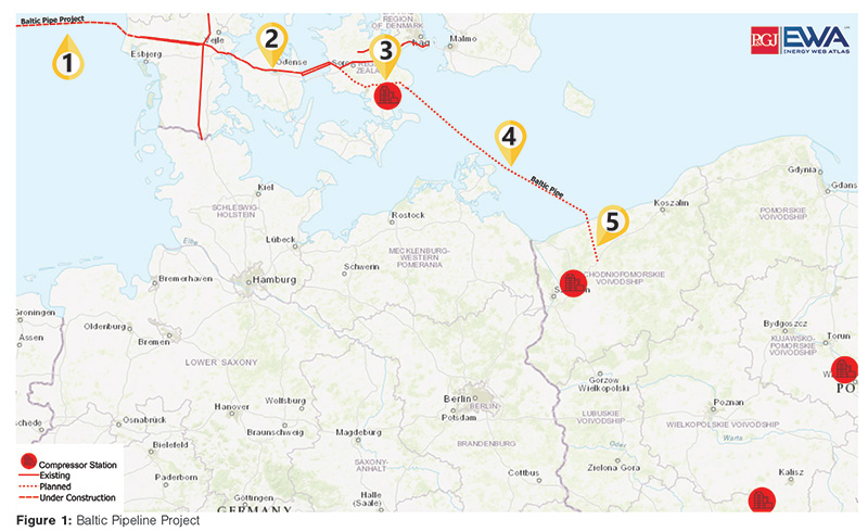 The Baltic Pipe will carry natural gas from the Norwegian North Sea to the Danish, Polish, and Eastern European gas markets. The pipeline will be connected to the Polish Baltic Sea LNG import terminal of Świnoujście, eventually enabling LNG exports to Denmark and Sweden.