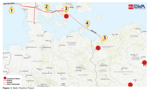 This section, the Baltic Sea subsea pipeline, will operate at a pressure range between 6.7 MPa and 12 MPa and connect Faxe South in Denmark to Niechorze-Pogorzelica in Poland.