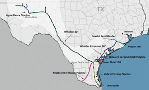 The Whistler pipeline is an approximately 450-mile, 42-inch intrastate pipeline that transports natural gas from the Waha Header in the Permian Basin to Agua Dulce, Texas, providing direct access to South Texas and export markets. An approximately 85-mile 36-inch lateral provides connectivity to the Midland Basin.