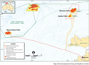 The Barossa project, due to start producing gas in 2025, calls for the construction of a nearly 260-km (162-mile) pipeline to the west of the Tiwi Islands that will connect offshore gas facilities to an existing pipeline that runs to Darwin in the Northern Territory.