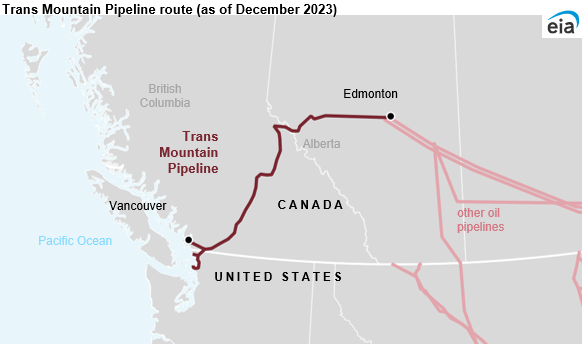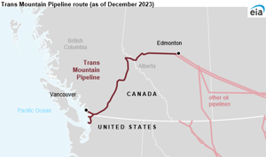 The existing Trans Mountain Pipeline currently offers one avenue for waterborne crude oil exports out of Canada by moving crude oil from Edmonton in Alberta to Burnaby, a port near Vancouver on the coast of British Columbia. The expansion project aims to increase the pipeline’s current capacity by 590,000 bpd, bringing the pipeline to a capacity of 890,000 bpd.