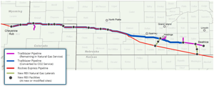 As part of the conversion plan outlined in the application to FERC, Trailblazer intends to decommission various facilities, including 392 miles of pipeline, gas-fired and electric compressor stations with a total capacity of 60,000 horsepower, and the Clay Interconnect delivery point in Clay County, Nebraska, owned by Tallgrass Interstate Gas Transmission, LLC.